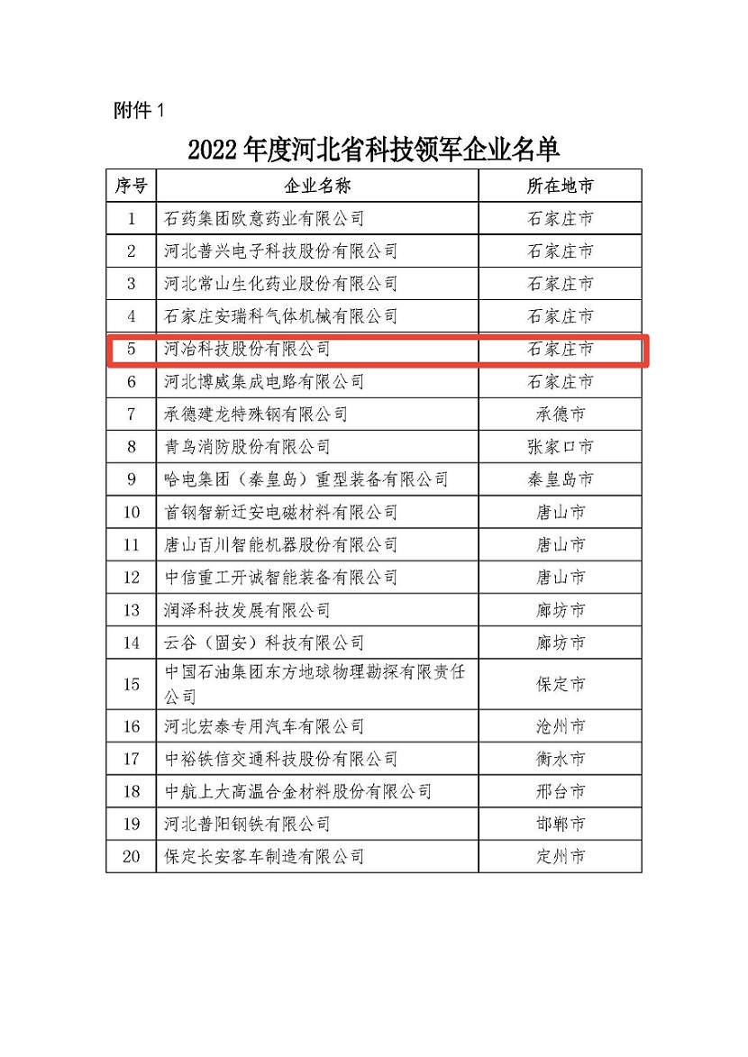 近日,河北省科技廳發(fā)布《關(guān)于公布2022年度認定河北省科技領(lǐng)軍企業(yè)和列入科技領(lǐng)軍企業(yè)培育庫企業(yè)的通知》,我公司經(jīng)推薦、評審、公示,成功被認定為河北省科技領(lǐng)軍企業(yè)